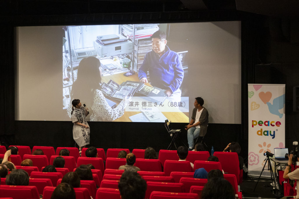ピースデートークには、UFPFF 2018受賞者で東京大学学生の庭田 杏珠さん、2017年にサラエヴォで開館した子ども戦争博物館の創設者のヤスミンコ・ハリロビッチさんがビデオで参加し、asobot inc. 代表の伊藤剛さんの進行のもと、「どう過去の戦争のことを語り継ぎ、未来を平和にするのか?」というテーマでディスカッションをしました。